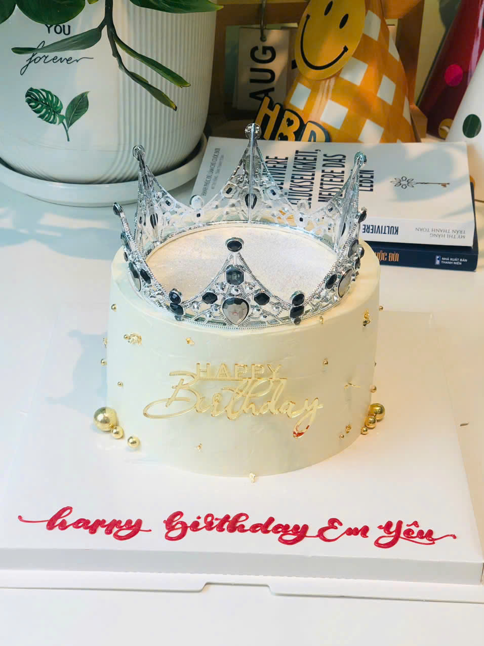 Bánh kem thổi kim tuyến mẫu Vương Miện
