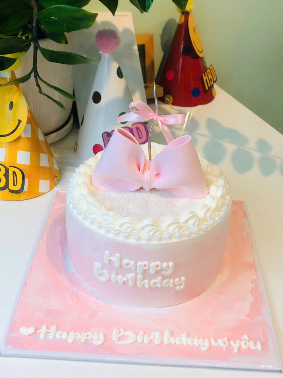 Bánh kem thổi kim tuyến mẫu Nơ tạo hình