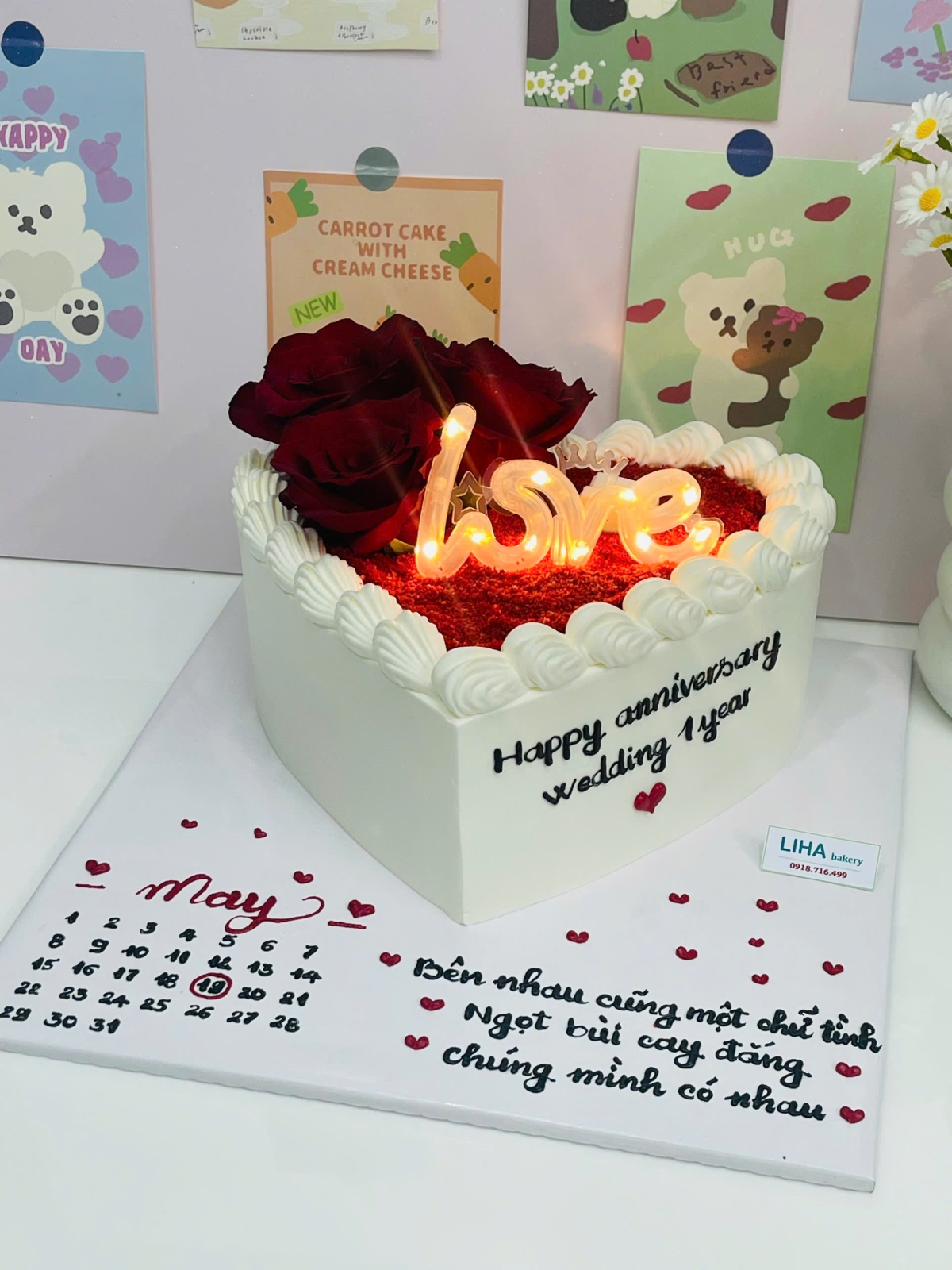 mẫu hoa hồng đỏ kèm đèn chữ LOVE làm từ size 18 trở lên