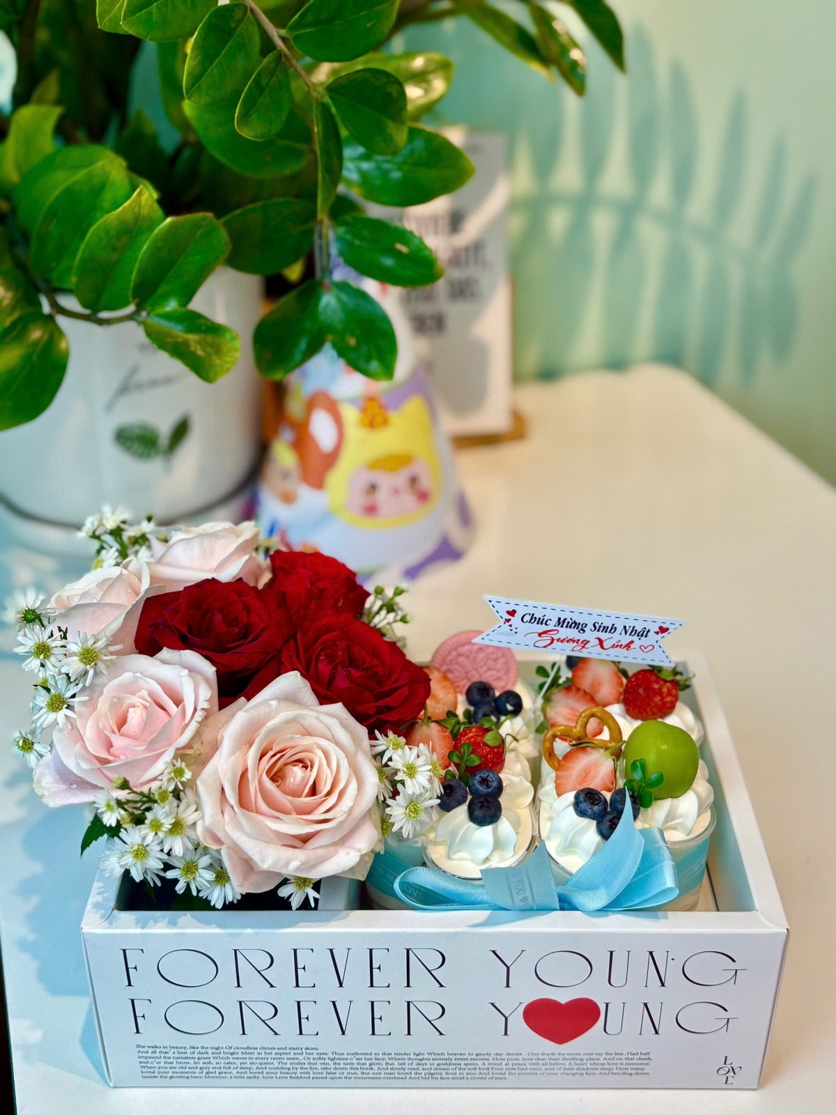 Set bánh kem đốt trái tim và hoa hồng mẫu 1