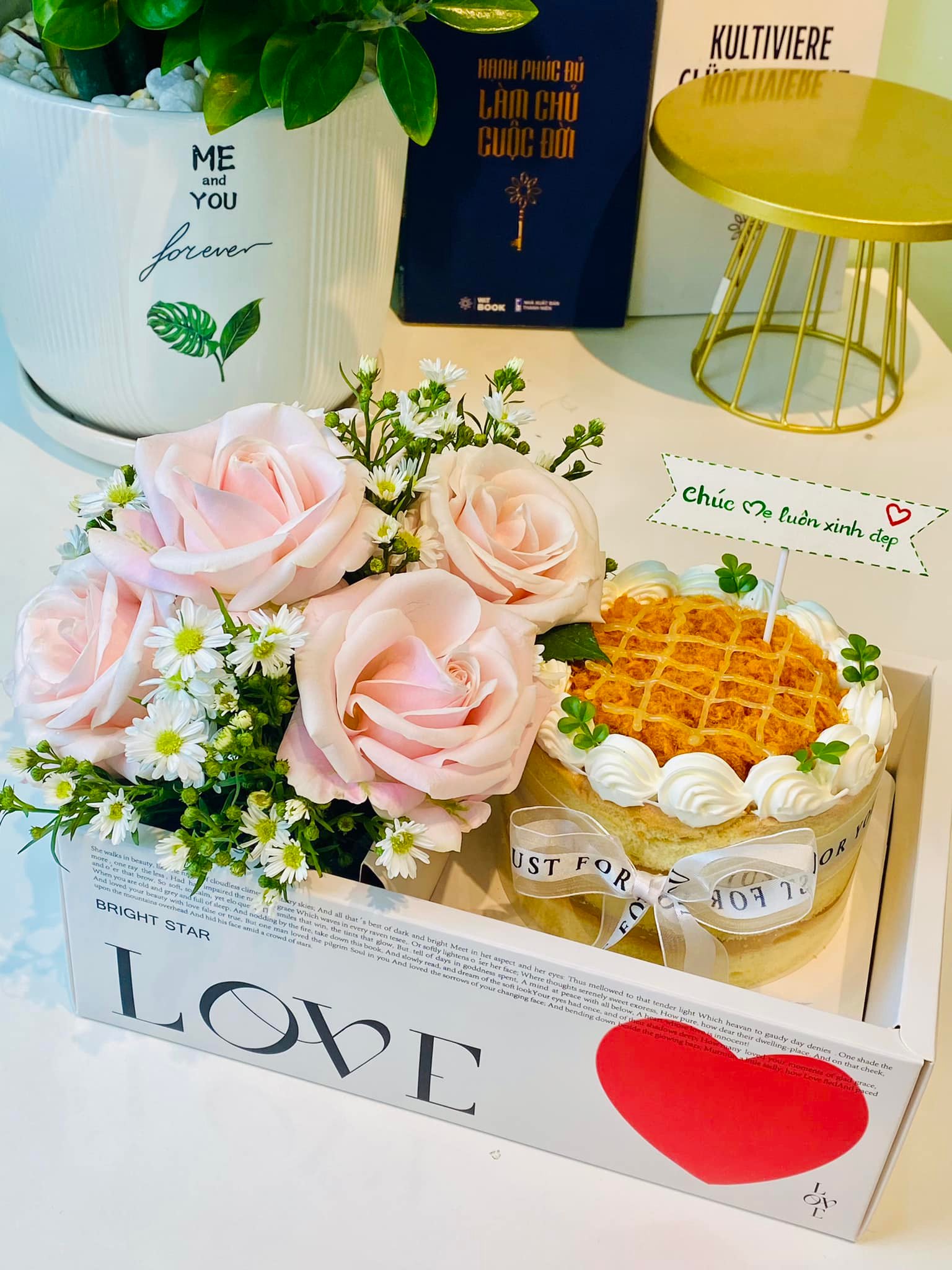 Set bánh bông lan trứng muối size 12 và hoa hồng